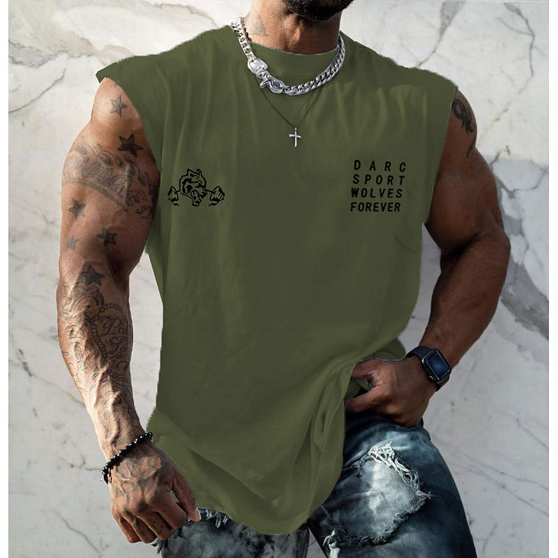 Men's Graphic Letter Gym Tank Top Vest Top Undershirt Casual Style Classic Style Sleeveless T shirt Hot Stamping Crew Neck Shirt Sports Lightweight Big and Tall Vacation Casual Daily Black White Navy