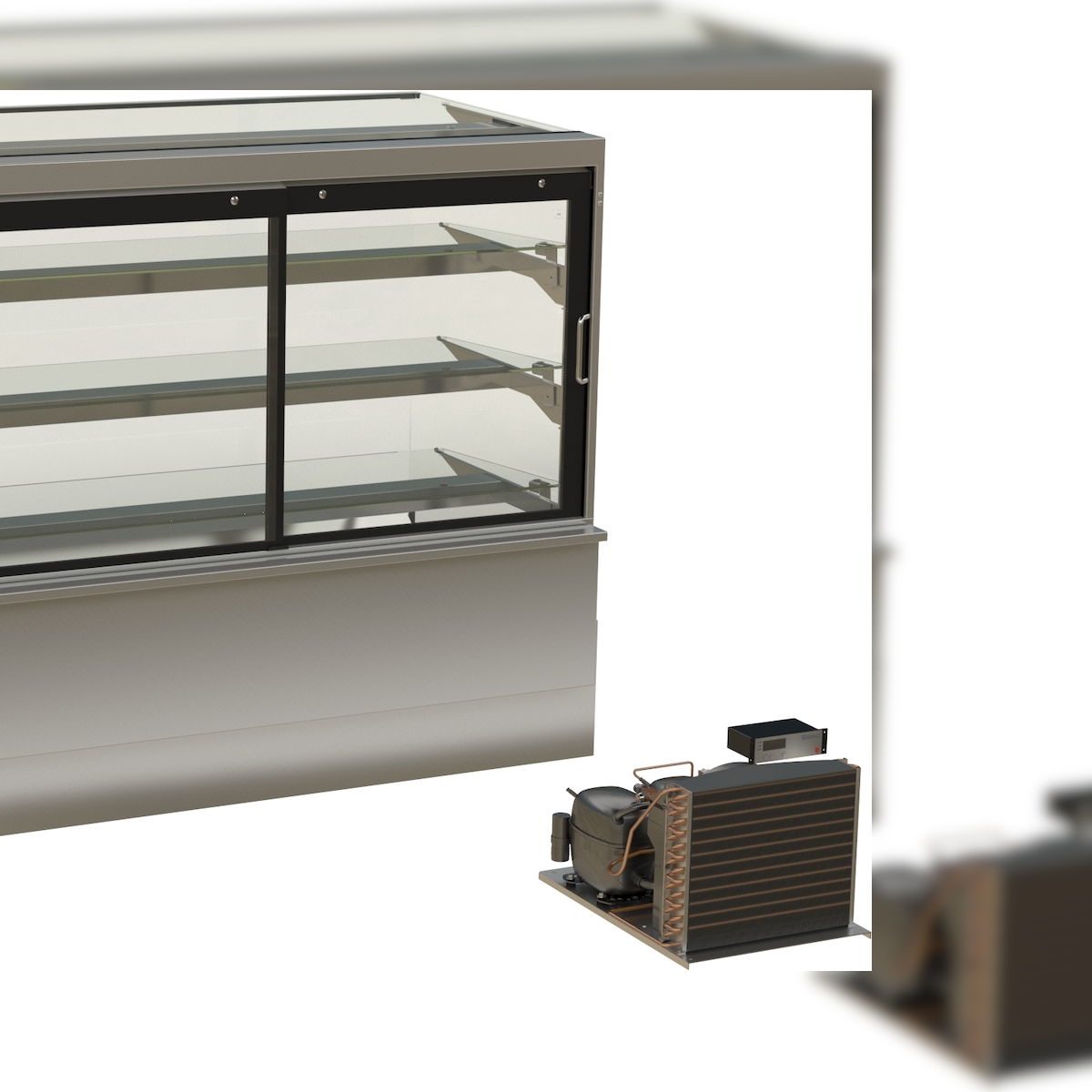 HAGOLA Showcase "Malmö" eckig, mit Tortenauszug, für 3 Kuchenbleche, 4 Auslagen 1330x910/265x778mm (BxHxT) steckerfertig mit Schnellkupplung