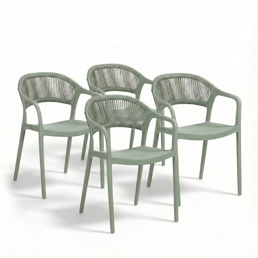 RATTATAN Set aus 4 Stühlen aus Polypropylen mit Kordelgeflecht, elegant, widerstandsfähig, stapelbar, für Garten, Balkon, Bars, Restaurants JOLANDA/Salbeigrün