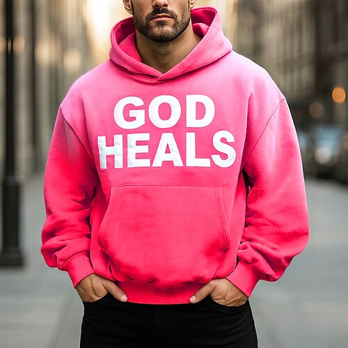 Per uomo Sfumatura Lettera Felpa con Cappuccio Moda Quotidiano Casual Manica Lunga Con Cappuccio Vacanza Feste Abbigliamento casual alla moda Festival Rosa Blu Arancione Verde Grigio scuro Tasca
