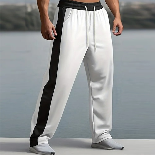 Per uomo Pantaloni da tuta Pantaloni Pantaloni della tuta a gamba dritta Coulisse Tasca Elastico in vita Blocco di colori Comodità Sport all'Aperto Quotidiano Moda Casual Nero Bianco Micro-elastico