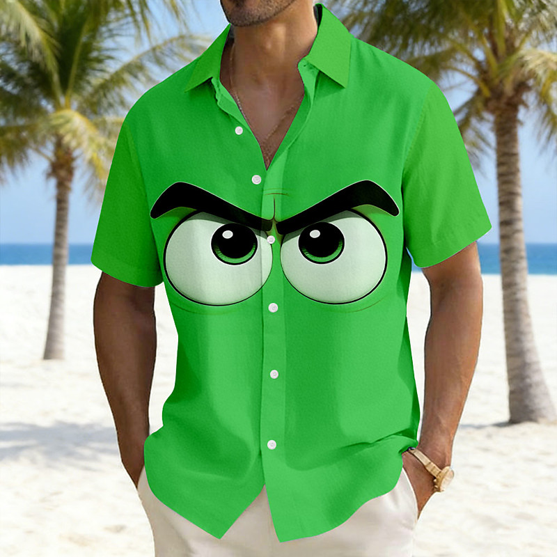 Men's Optical Illusion 3D Cartoon Big Eyes Shirt Summer Shirt Button Up Shirt Short Sleeve Fashion Casual Outdoor Vacation Dailywear Summer Turndown 3D Print Linen Like Shirt Blue Yellow Purple