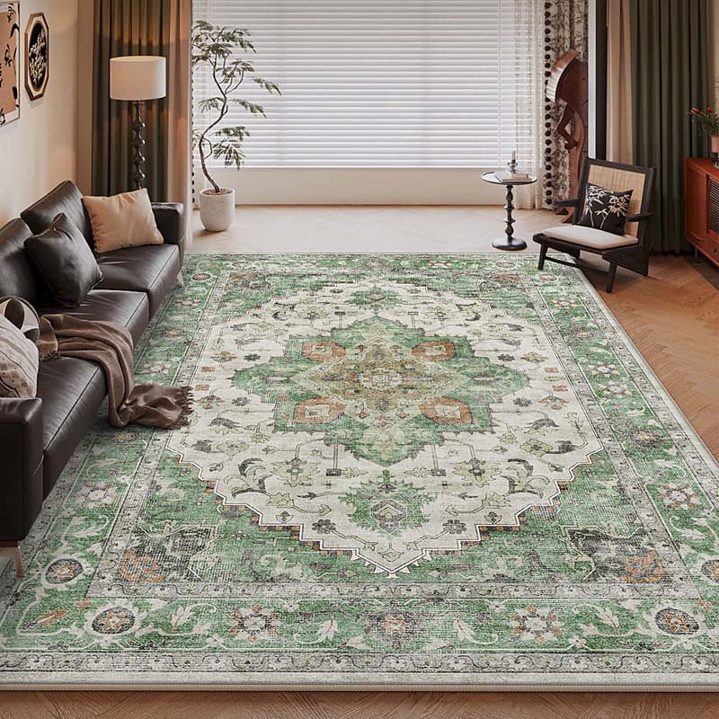 Machine Washable Area Rug, Vintage Living Room Carpet, Washable Coffee Table Rug with Non-Slip Backing, Foldable and Easy to Clean, Soft and Durable Floor Mat for Home