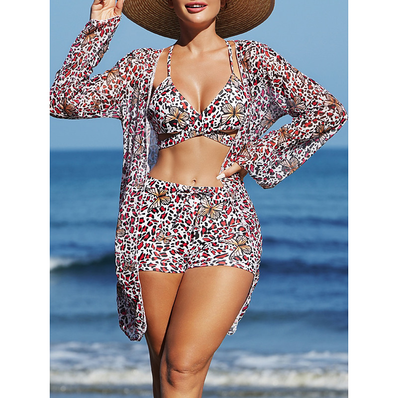 Women's Bikini 3 Piece Swimsuit Shorts Slim Backless Vacation Beach Wear V Neck Sleeveless Bathing Suits