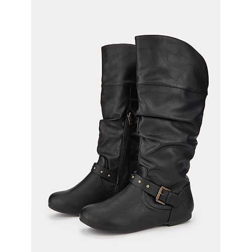 stivali alti fino al ginocchio in similpelle nera da donna – cerniera laterale e cinturino con fibbia, moda autunnale e da equitazione