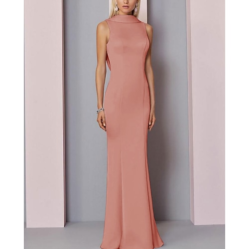 Matrimonio in spiaggia Abito da sera a linea ad A Abito elegante Ospiti di matrimoni Lunghezza fino a terra Senza maniche Collo alto Mantelli Chiffon con arricciature