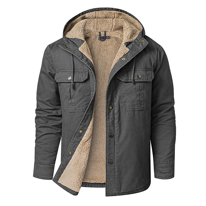 Men's Winter Coat Fleece Jacket Casual Jacket Work Jacket Casual Daily Thermal Warm Pocket Full Zip Fall Winter Solid Color Streetwear Daily Hooded Regular Blue Black Brown Green Khaki Jacket