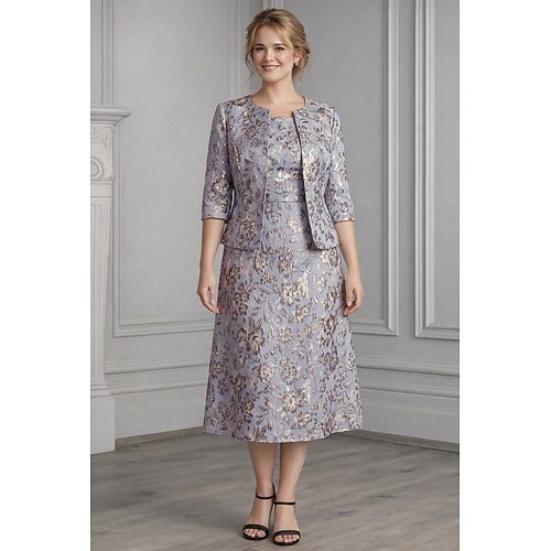 Due Pezzi Linea ad A Lunghezza alla caviglia Lunghezza Tè Abito da invitata a nozze Abito da cerimonia per signora Senza Maniche Manica 3/4 Scollo a V Elegante Semplice Casual Formale Ospite di nozze
