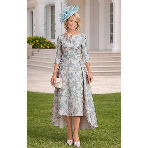 Linea ad A Abito alto-basso Lunghezza Tè Vestito da Festa Abito da Cocktail Abito da invitata a nozze Abito da cerimonia per signora Manica 3/4 Scollo a V Scollo a Barca Elegante Vintage Formale