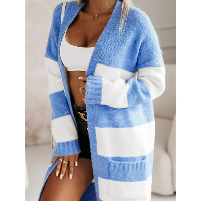 Women's Sweater Cardigan Elegant Fashion Streetwear Striped Open Front Knitted Long Sleeve Long Tops Knit Outdoor Daily Weekend Pink Blue Fall Winter