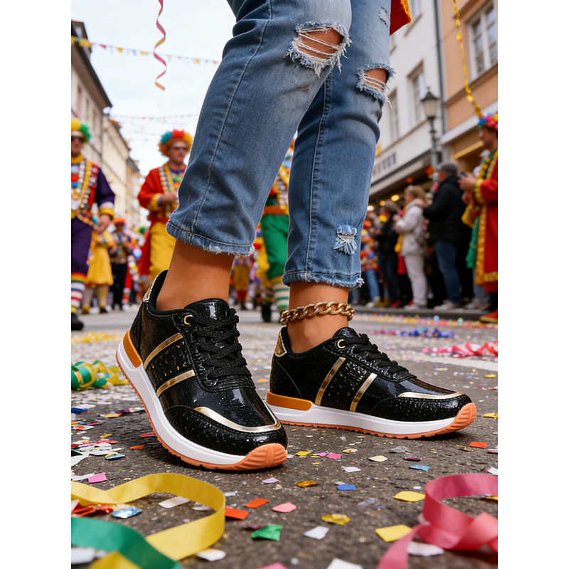 Women's Mardi Gras Metallic Gold Glitter Sneakers, Lightweight Carnival Fashion Shoesfor Festival Outfits, Daily Wear, Travel Celebration Events