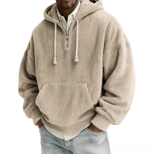 Per uomo Felpa con cappuccio Velluto a coste Felpa con cappuccio e zip corta Aalbicocca Rosso bordeaux Nero Bianco Blu marino Con Cappuccio Semplice Tasca a marsupio Testurizzato Casuale Quotidiano