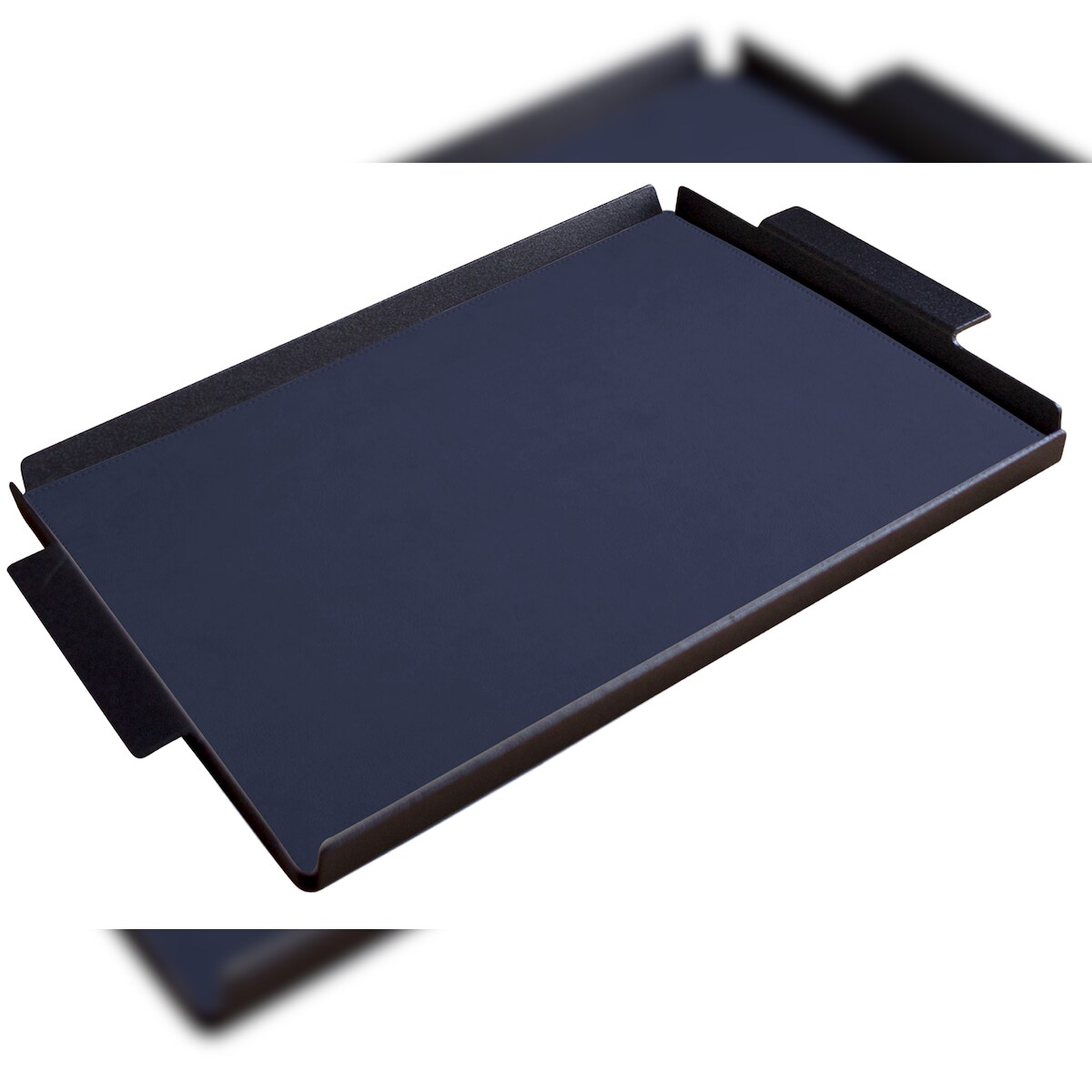 Stil Casa, 6er Set Serviertabletts, schwarz lackiertes Aluminium, Deckel aus genähtem, laminiertem Polyurethan, 45x65xh. 0,2 cm, Farbe blau.