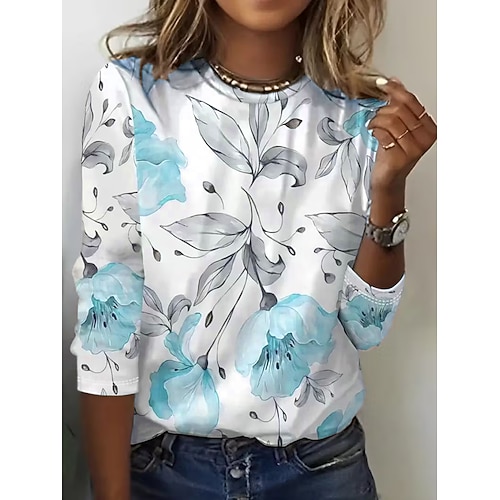 Per donna Maglietta Floreale Grafico Piante Moda Elegante Classico Manica Lunga Girocollo Top Regolari Quotidiano Weekend Stampato Blu Rosa Viola Verde Estate Primavera Autunno