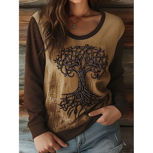 Maglietta da donna vichinga grafica tribale vintage alla moda elegante manica lunga girocollo girocollo top normali quotidiano weekend stampa marrone estate primavera autunno inverno
