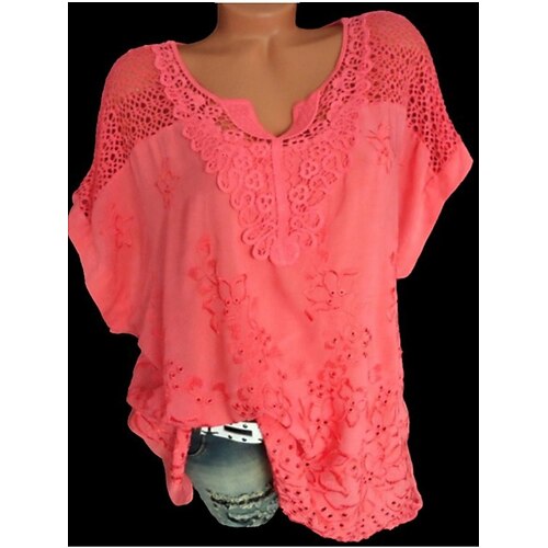 Per donna Maglietta Semplice Moda Elegante Classico Manica Corta Scollo a V Top Regolari Quotidiano Weekend Pizzo Patchwork Blu Nero Bianco Rosso Grigio Estate Primavera