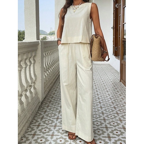 Per donna Set di biancheria in cotone Set da due pezzi Set di Pantaloni Senza Maniche Girocollo Semplice Moda Streetwear Casuale Quotidiano All'aperto Bianco Giallo Cachi Estate Vestibilità regolare