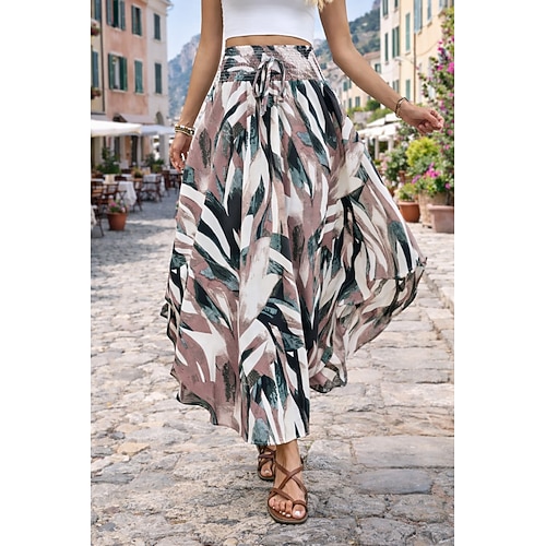 Per donna Gonna da vacanza Elegante Bohemien Moda Casual Midi Vita media Gonne Grafico Paisley Coulisse Elastico in vita Orlo irregolare Inelastico Quotidiano Vacanza Blu Nero Bianco Giallo Estate