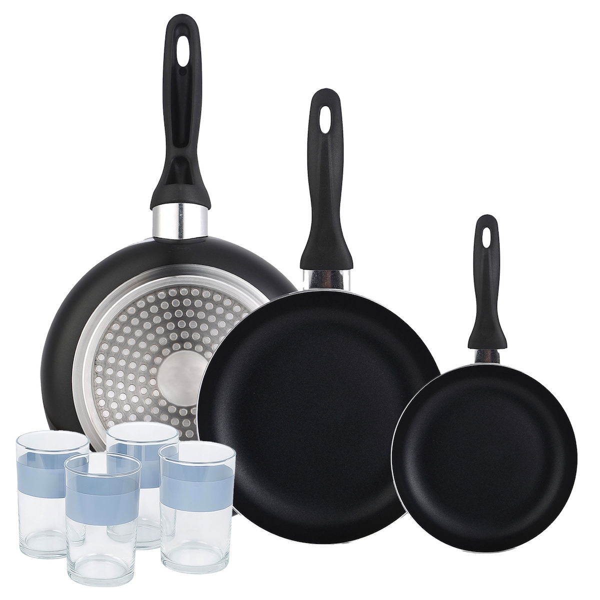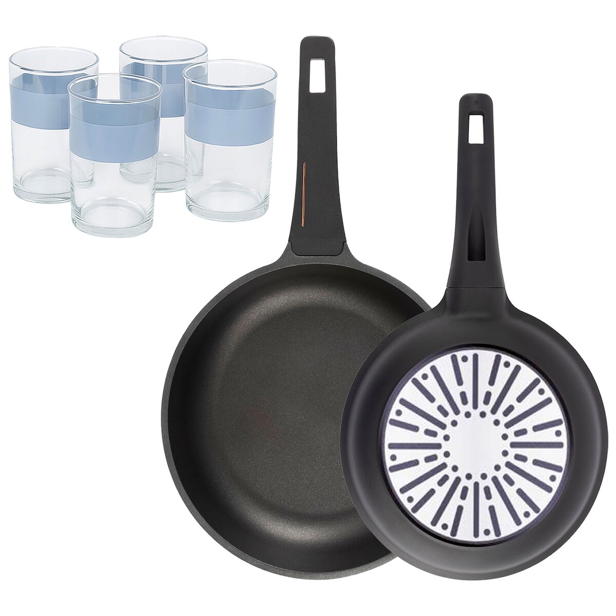 BERGNER - Set mit 2 Bratpfannen Ø24/28cm aus Aluminiumguss mit Bakelitgriff mit 4er-Set Gläser 0,5 L NOIA