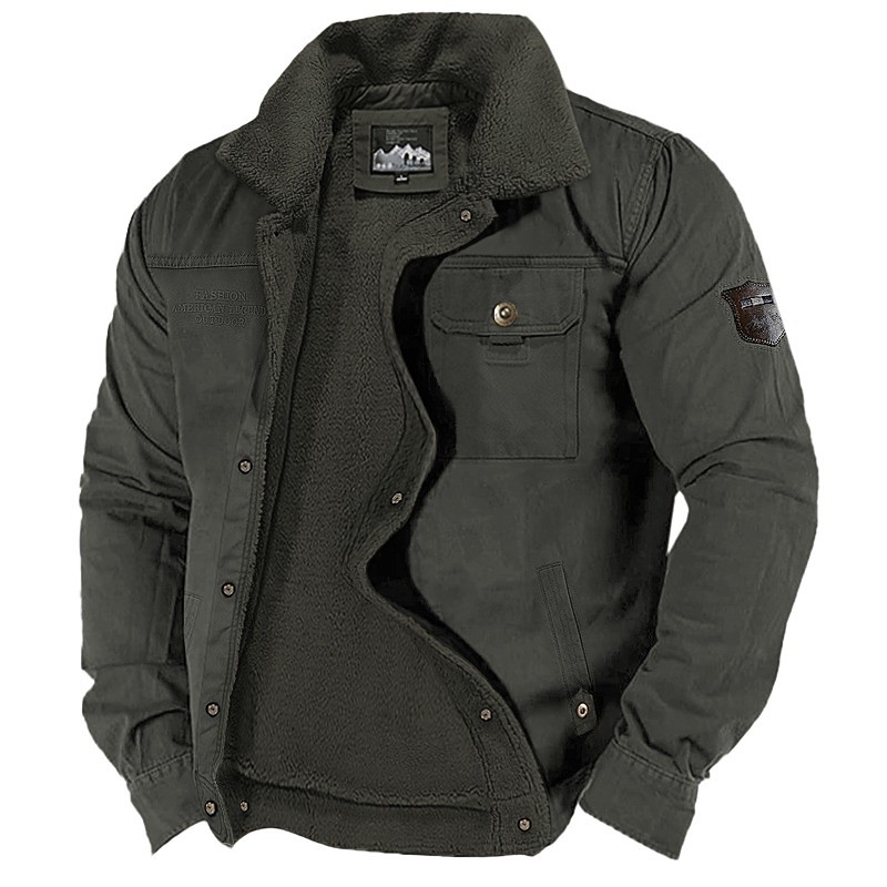 Men's Fleece Jacket Cargo Jacket Chore Jacket Formal Home Windbreaker Durable Pocket Fleece Collar Fall Winter Solid Color Active Vintage Collar Regular Navy Blue Dark Green Khaki Jacket