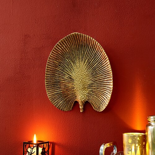 Decorazione da appendere a forma di foglia dorata antica, materiale in resina, stile retrò europeo, decorazione da parete per la casa, adatta per la decorazione di case e hotel, oggetti di scena per