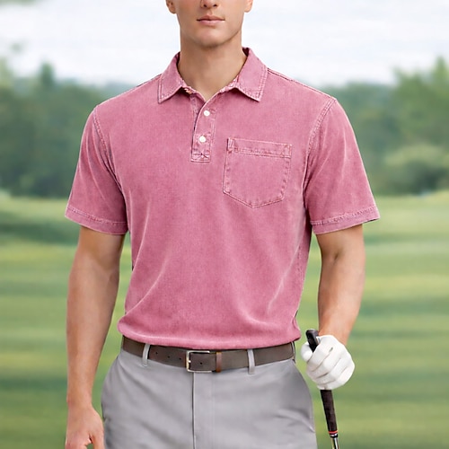 Per uomo Polo Camicia lavata con acido Casuale Sportivo Collo ripiegato Manica Corta Sport Moderno Semplice Tasca Traspirante Primavera Estate Blu Nero Rosa Blu marino Viola Verde Polo