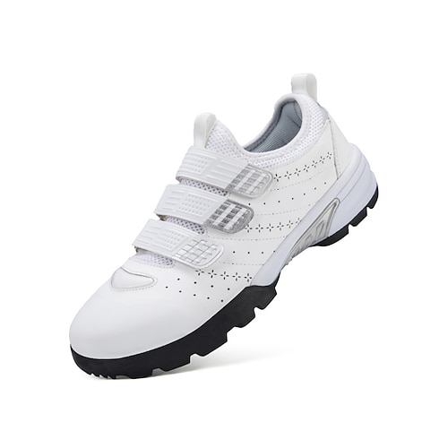 scarpe da golf da uomo, in similpelle bianca con strisce blu, traspiranti e leggere, suola antiscivolo, perfette per campi da golf, sport all'aria aperta e stile di vita attivo
