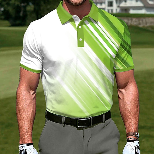 Per uomo A righe Polo Sportivi Maglia da golf Manica Corta Magliette polo Camicie con Colletto Casual Abbigliamento sportivo Abbigliamento da vacanza Stampa 3D Bottoni Primavera Estate Nero