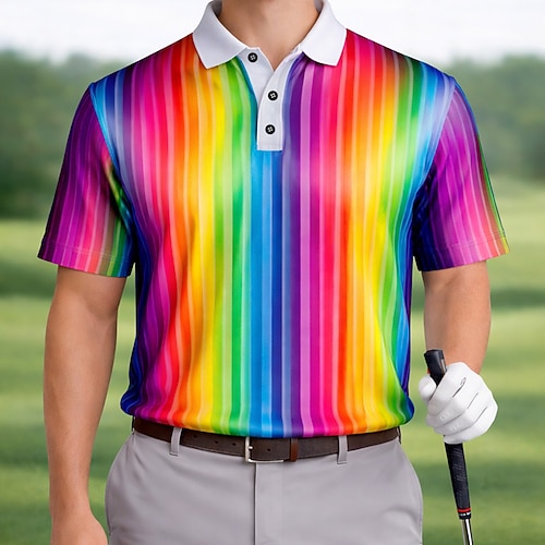 Per uomo Blocco di colori Golf Polo Sportivi Manica Corta Magliette polo Camicie con Colletto Casual Athleisure Abbigliamento quotidiano Stampa 3D Bottoni Primavera Estate Arcobaleno