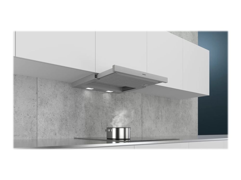 Siemens iQ100 LI64LA521 - Hætte - teleskopisk - Niche - bredde: 52.6 cm - dybde: 29 cm - udtrækning og recirkulation (-) - metalsølv