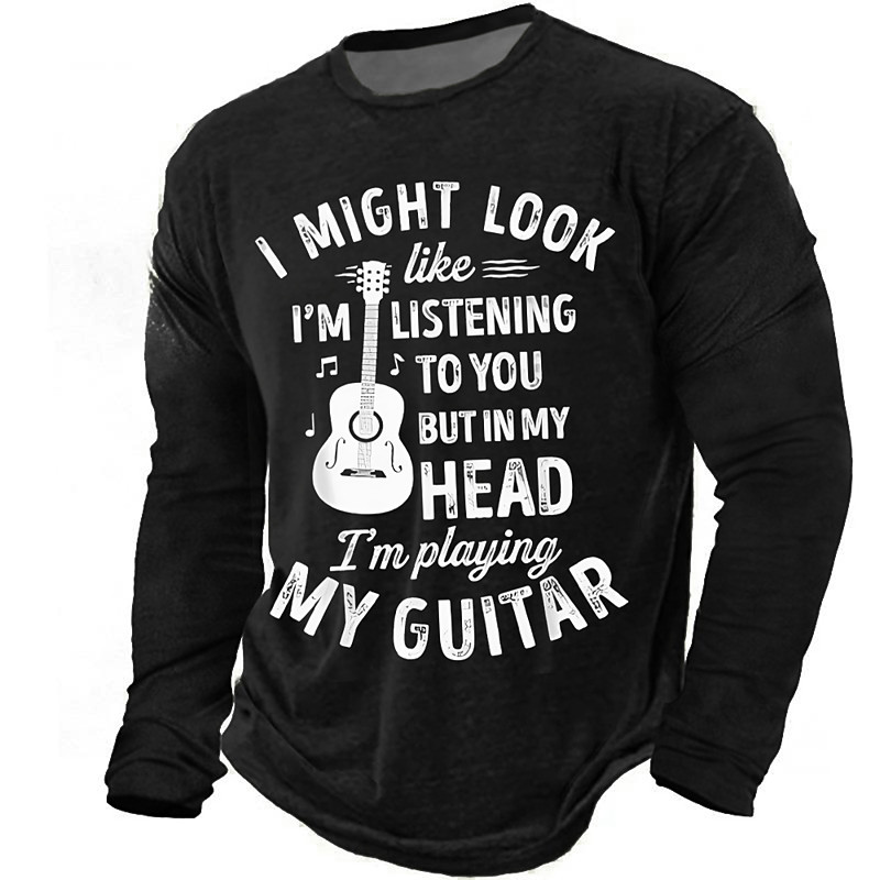 I Might Look Like Im Listening To You But In My Head Im Playing My Guitar Funny Slogan Long Sleeve T-Shirt Mens Vintage Musical Graphic Tee Humorous Musician Gift Tops Clothing Apparel S M L XL XXL XX