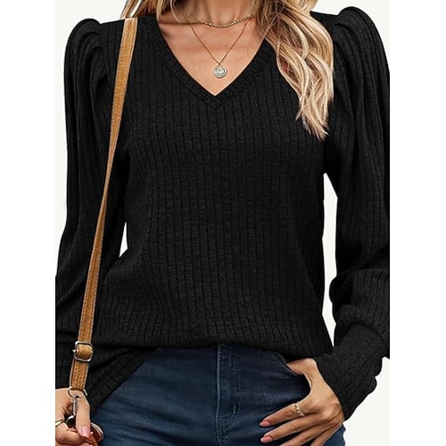 Per donna Blusa Tinta unica Elegante Casual Manica Lunga Scollo a V Top Regolari Quotidiano Nero Vino Cachi Primavera Autunno Inverno