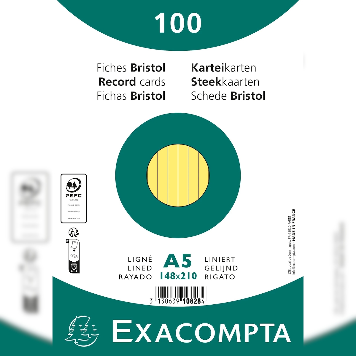 Exacompta 10828SE 10x Karteikarten liniert DIN A5 100 St eingeschweißt - Gelb
