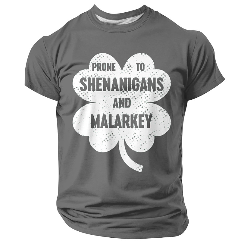 St Patricks Day Prone To Shenanigans And Malarkey T Shirt Funny Irish Clover Leaf Graphic Tee Men Lucky Green Holiday Party Top Clothing Apparel S M L XL XXL XXXL