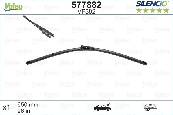 Pyyhkijänsulka, Keskellä Valeo Silencio flat blade single 577882 - citroën c1 ii, peugeot 108, toyota aygo - OE 1612432380, 1612432480, 852220H020