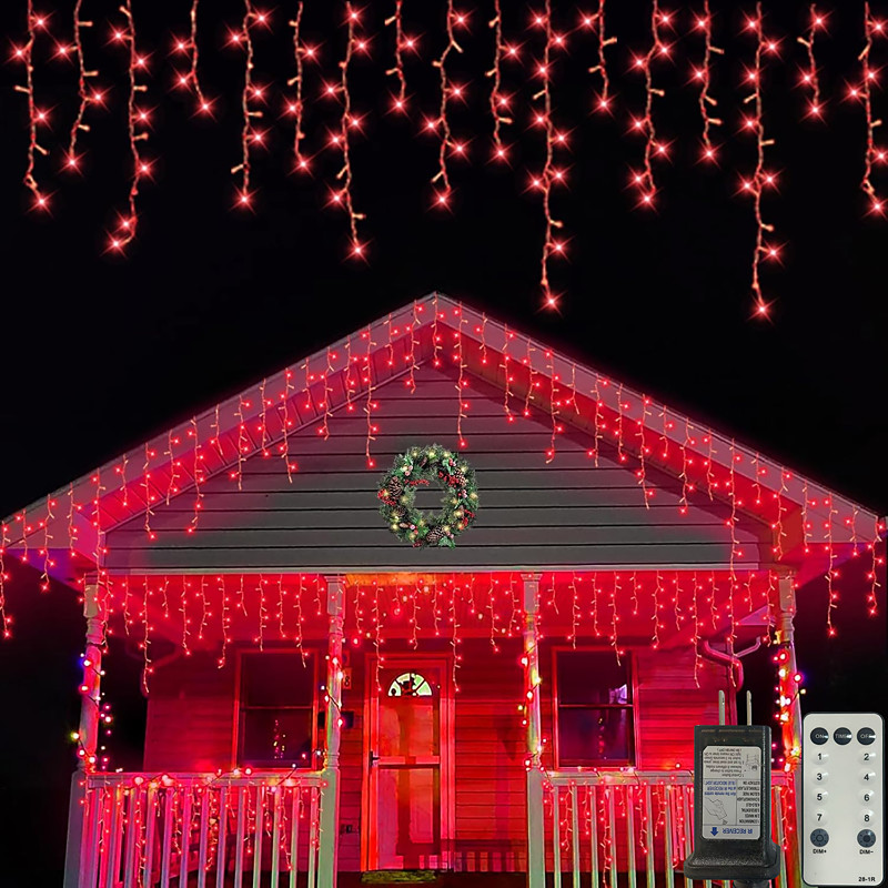 Christmas Icicle Lights 33ft 400 Leds 48 Drops 8 Function Timer Remote Control Clear Wire Connectable String Lights Holiday Wedding Party Decorative Lights Low Voltage Safe Plug in