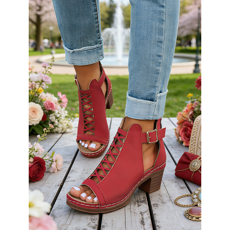 Women's Floral Cutout Slingback Sandals – Comfortable Chunky Heel Summer Sandals for Casual Garden Party Wear