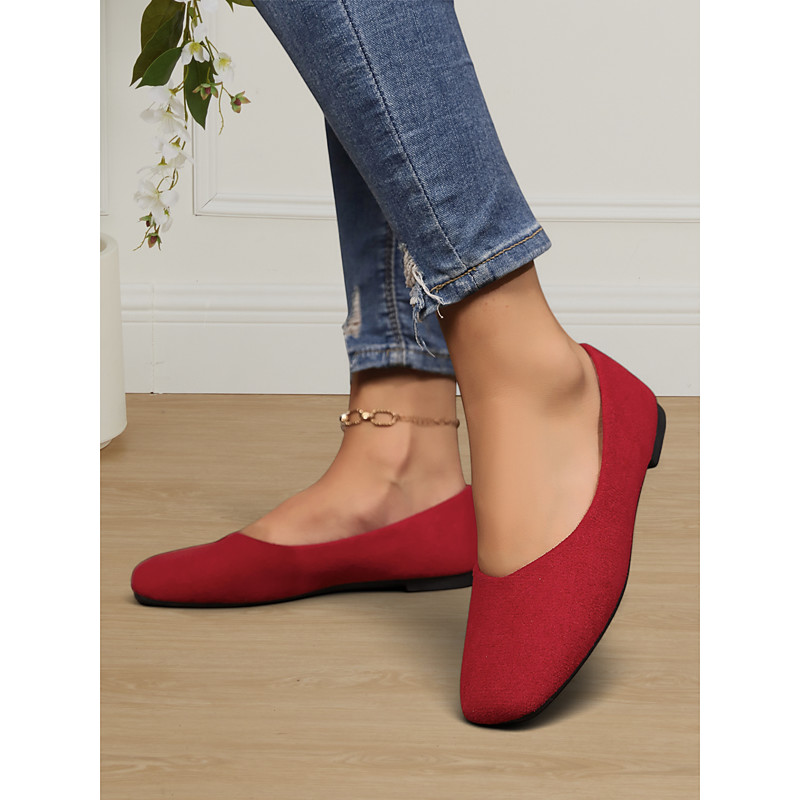 Women's Faux Suede Classic Square Toe Slip-On Flats for Everyday Wear, Office Travel