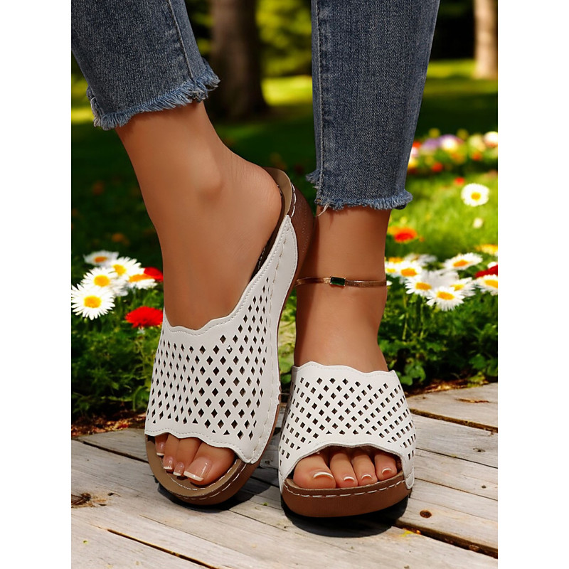 Women's Cutout Slip-On Sandals – Breathable Slide Sandals for Casual Summer Outings Travel