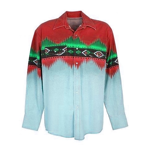 Herren Stammes Grafikdrucke Geometrie Hemd Westernhemd Cowboy-Shirt Langarm Mode Designer Lässig Täglich Outdoor Herbst Winter Umlegekragen Druck Button-Down Blau Meeresblau Gelb Rote Grün