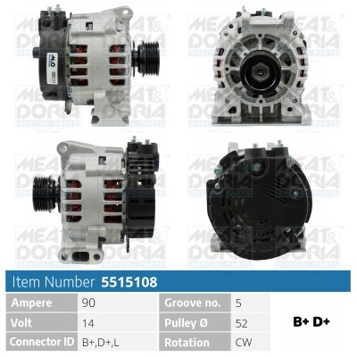 Laturi 14V 90A Meat & doria 5515108 - mercedes-benz a-klass [w168, w169], vaneo [414] - OE 0101543802, 0111540002, 0111543502
