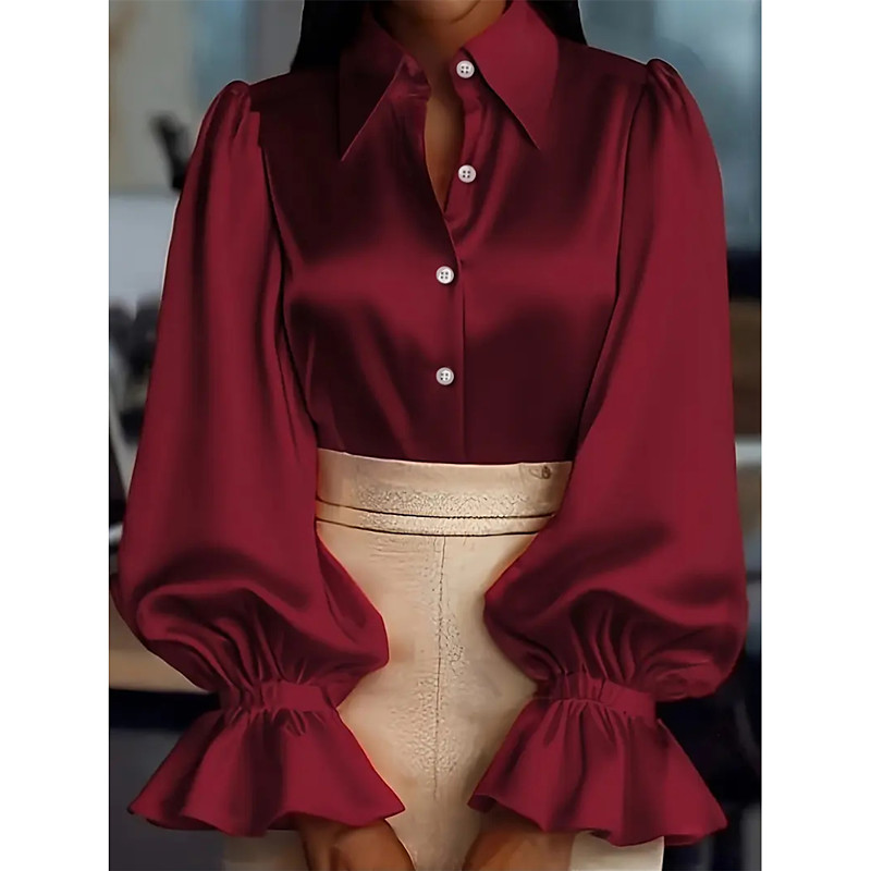 Women's Shirt Blouse Plain Modern Casual Long Sleeve Shirt Collar Regular Tops Daily Holiday Buttons Wine Purple Brown Fall