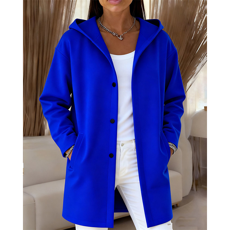 Women's Winter Coat Coat Windproof Warm Patchwork Pocket Buttons Elegant Fashion Cute Daily Solid Color Outdoor Home Work Casual Single Breasted Regular Hooded Regular Fit Long Sleeve Outerwear Blue