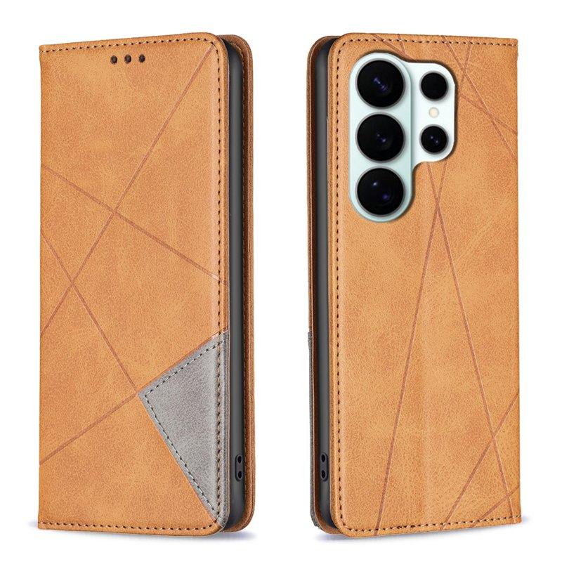Mobilskal till Samsung Galaxy S26 Ultra Äkta Läder Geometrisk Prägling - Gul