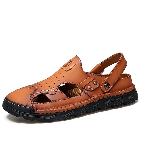 Per uomo Sandali Scarpe fatte a mano Pelle crosta Traspirante Comodo Antiscivolo Con lacci intrecciali Giallo-marrone Nero Marrone
