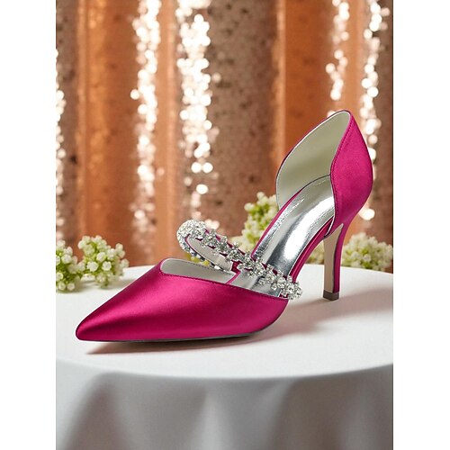 Scarpe con tacco a spillo in raso bordeaux da donna - scarpe eleganti con punta a punta e cinturino in cristallo per cocktail party ed eleganti eventi serali
