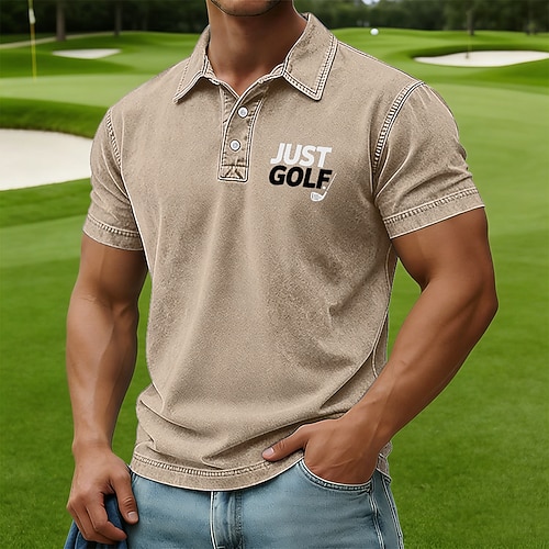 Per uomo Golf Camicia lavata con acido 100% cotone Manica Corta Magliette polo Camicie con Colletto Casual All'aperto Sportivo Ferie Stampa 3D Bottoni Primavera Estate Blu Viola Marrone