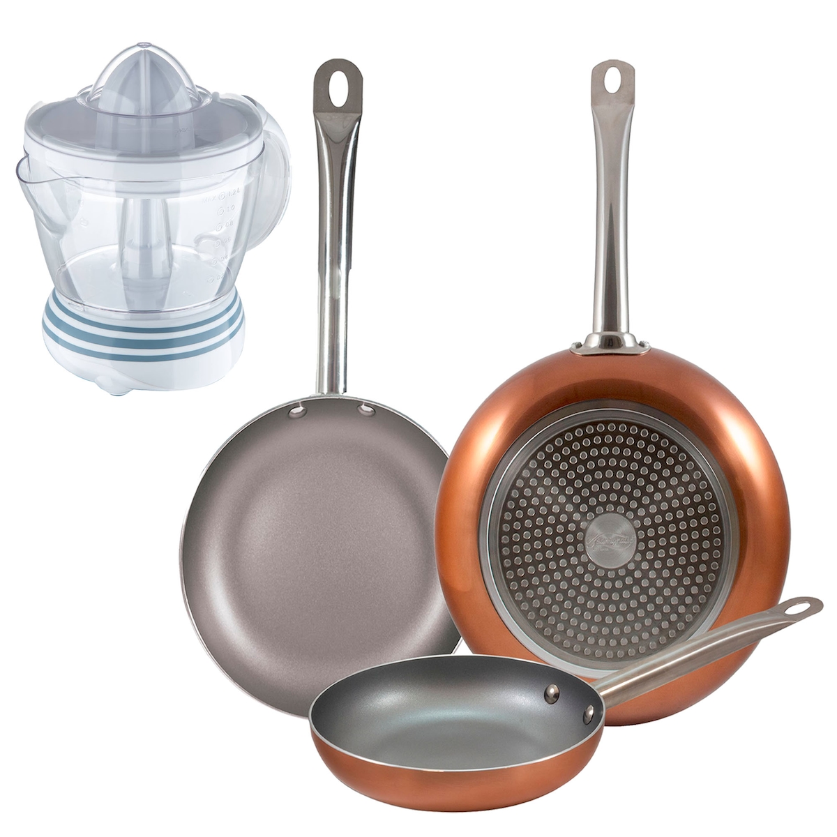 BERGNER - Set aus 3 gepressten Aluminium-Pfannen Ø18/Ø22/Ø26 cm, geeignet für Induktion Optimum Plus Entsafter NATURALLY 40 W, 1,2 L