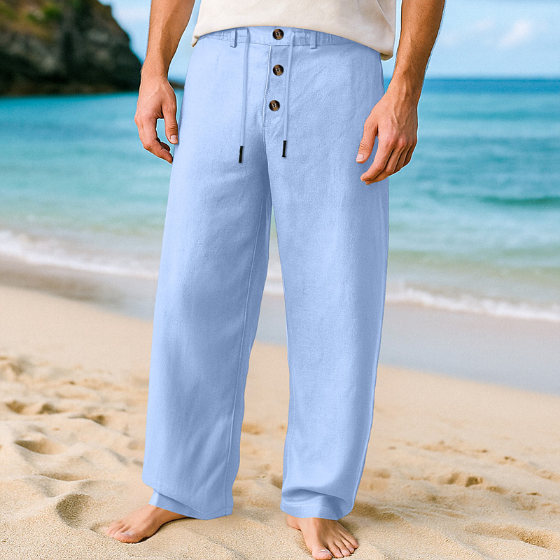 Men's Linen Pants Trousers Summer Pants Baggy Pants Beach Pants Drawstring Elastic Waist Straight Leg Plain Comfort Breathable Full Length Home Daily Holiday Vacation Fashion WhiteKhaki KhakiBlack