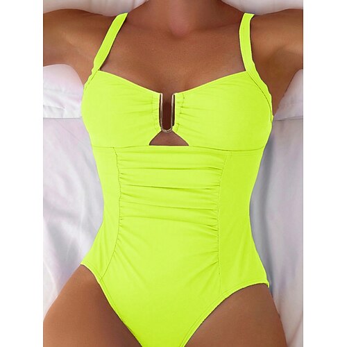 Costume da bagno intero da donna monokini sexy con ritagli vita alta controllo della pancia vita alta slim senza schienale abbigliamento da spiaggia per vacanze colore solido scollatura a collare